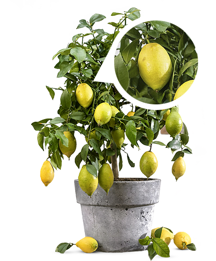 Кўчатларимиздан олинган лимонлар тез ўсиб, 2 ойдан сўнг ҳосилга киради. Дарахтда ҳар доим кўп мева бўлади. Йилига 120 кг гача ҳосил олинади.