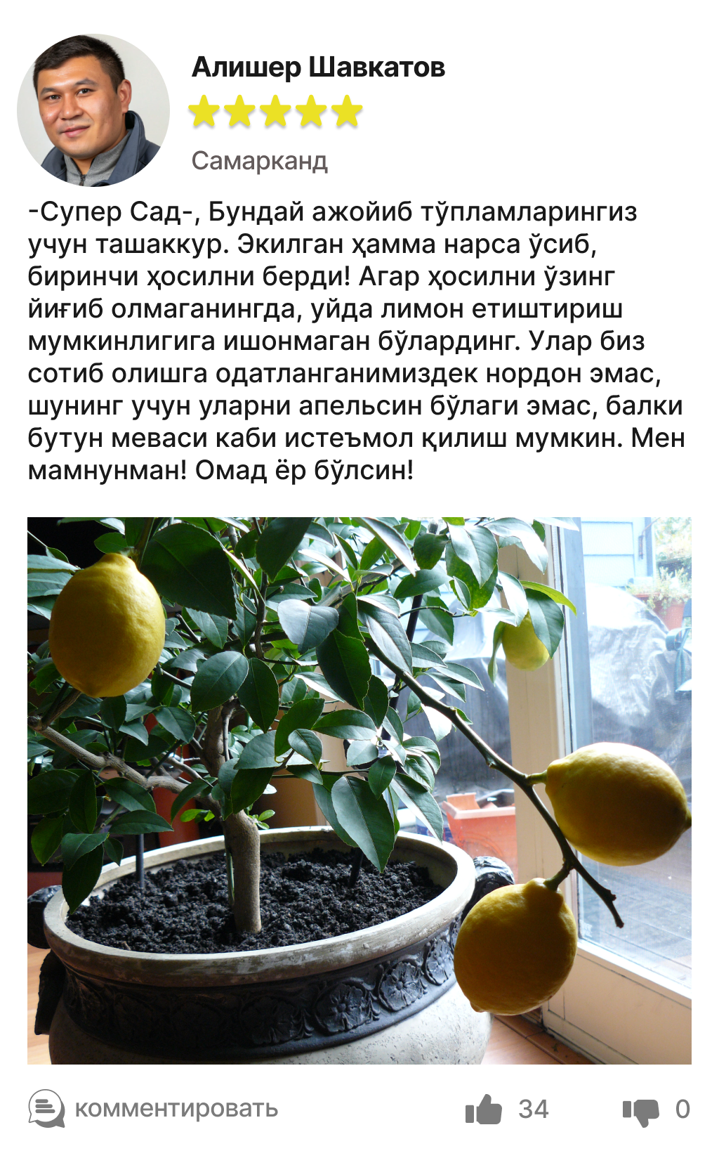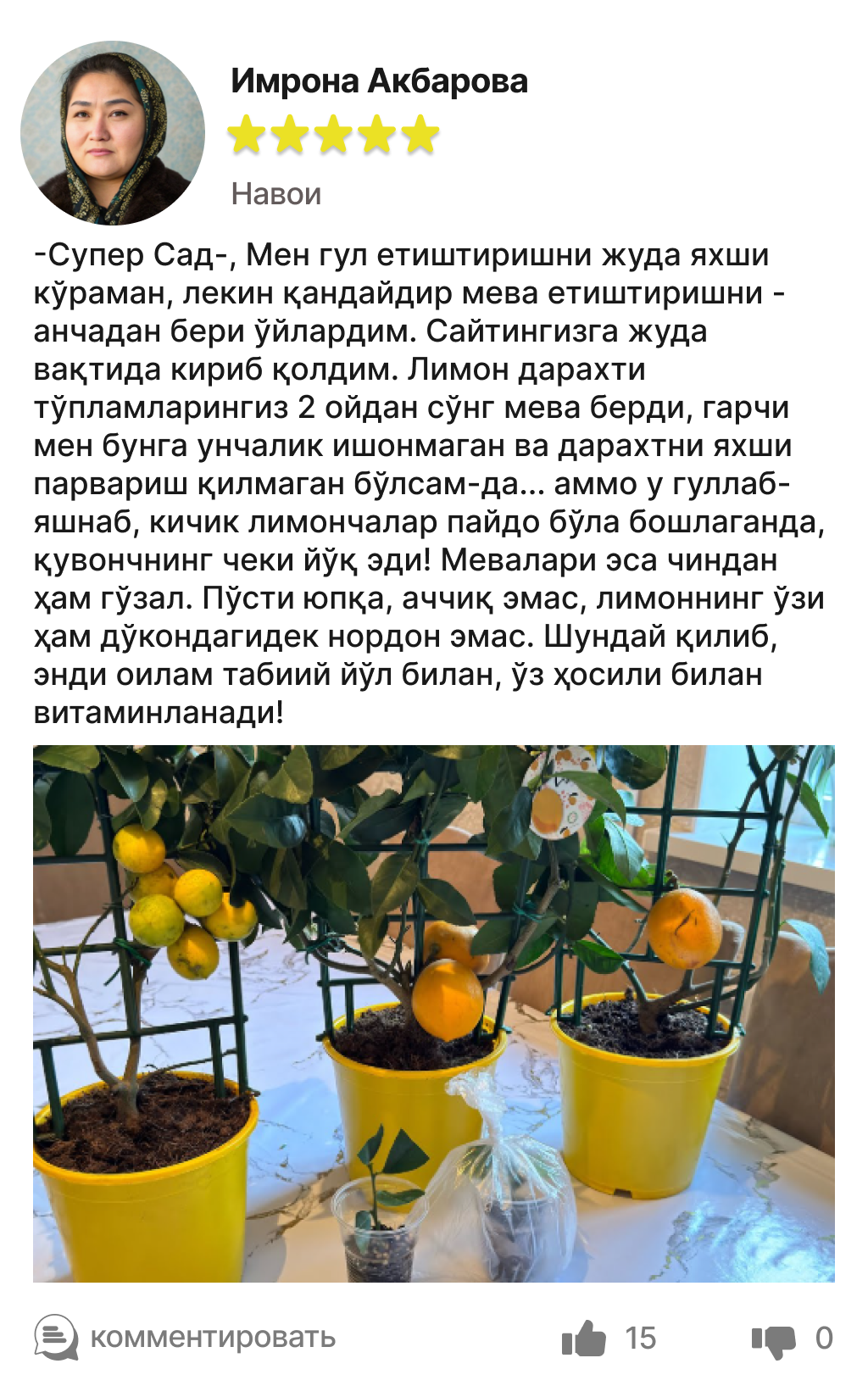 🍋 Ҳеч қандай пестицид ва ГМО йўқ