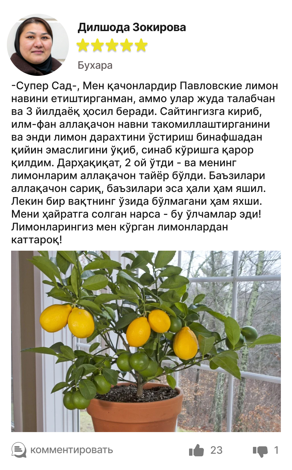 🍋 Битта тупдан йилига 120 кг гача мева олинади