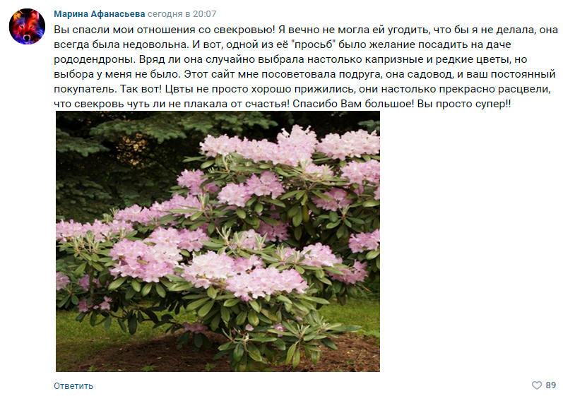 Bizning rododendronlarimiz sovuqqa chidamli, qishda ham gullaydi va alohida g'amxo'rlikka muhtoj emas.